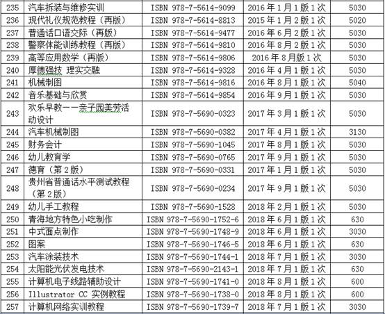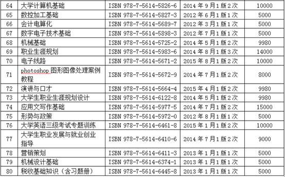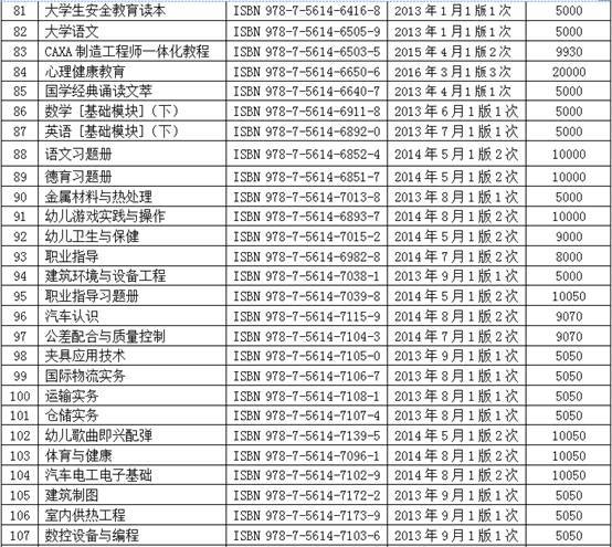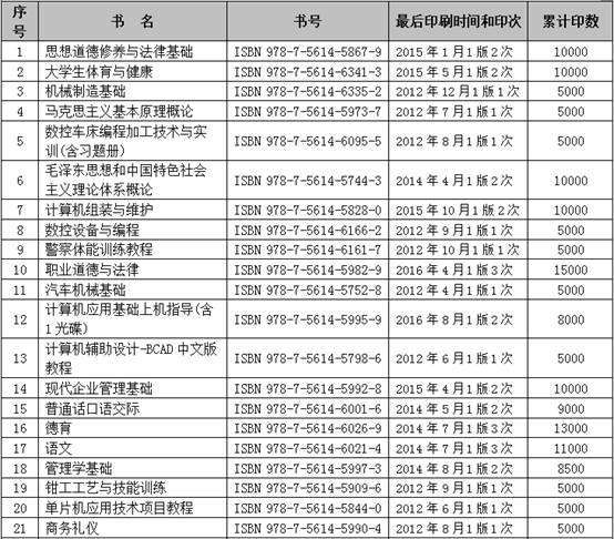 近年来,我社出版了系列教材、教辅及图书,努力为广大作者服务,为教育事业做贡献。现将我社近几年出版图书的情况,包括书名、书号、最后一次印刷时间和印次、累计印数等信息予以公布。