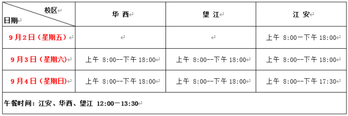 6.各校区(望江、华西、江安)教材发行点从9月5日起,按照正常工作时间为师生提供教材服务。