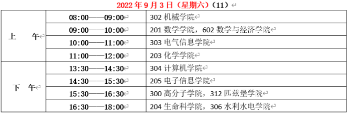 3. 各学院领取教材时间表