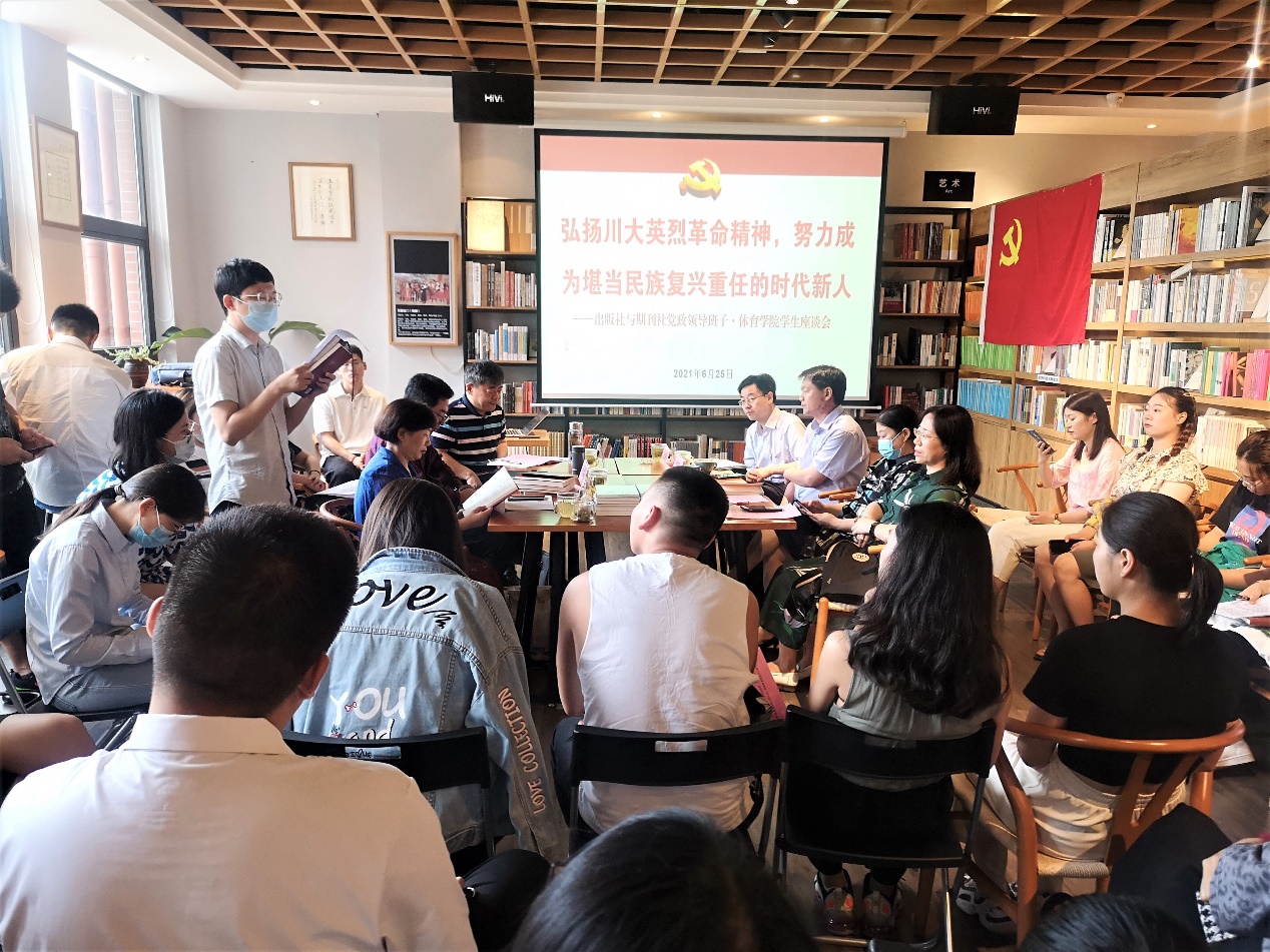 为深入开展党史学习教育,在党的一百周年华诞即将到来之际,出版社与期刊社党总支于2021年6月25日上午在出版社513会议室,以“弘扬川大英烈革命精神,努力成为堪当民族复兴重任的时代新人”为主题召开学生座谈会。出版社与期刊社党政领导班子成员、《川大英烈丛书》各位责任编辑及出版社与期刊社党总支联系学院——体育学院的副院长韩海军教授和全体硕士生参加座谈会,座谈会由出版社与期刊社党总支书记、期刊社社长宋绍峰主持。