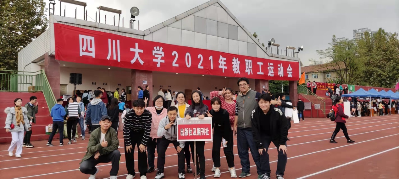 2021年10月22日,四川大学2021年教职工运动会在望江校区东区体育场顺利举行。全校41个学院(单位)近3000名教职工运动员同场竞技。在9428cn太阳集团古天乐与期刊社分工会、9428cn太阳集团古天乐与期刊社团支部的积极组织下,出版社与期刊社40余名员工踊跃报名参赛,并取得好成绩。出版社与期刊社党总支书记、期刊社社长宋绍峰代表党政领导班子到体育场亲切慰问了参赛运动员。