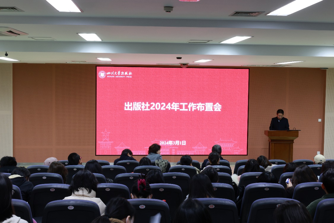 出版社与期刊社党总支书记庞国伟首先代表领导班子作2023年度工作总结。他指出,过去的一年,出版社与期刊社以习近平新时代中国特色社会主义思想为指引,认真贯彻落实学校党委九届二次全会精神,不断加强党的全面领导,不断完善体制机制,推动出版品牌建设、加快融合出版和川大出版“走出去”取得明显成效,期刊服务国家重大战略工程有序推进、办刊水平和学术影响力显著提升。