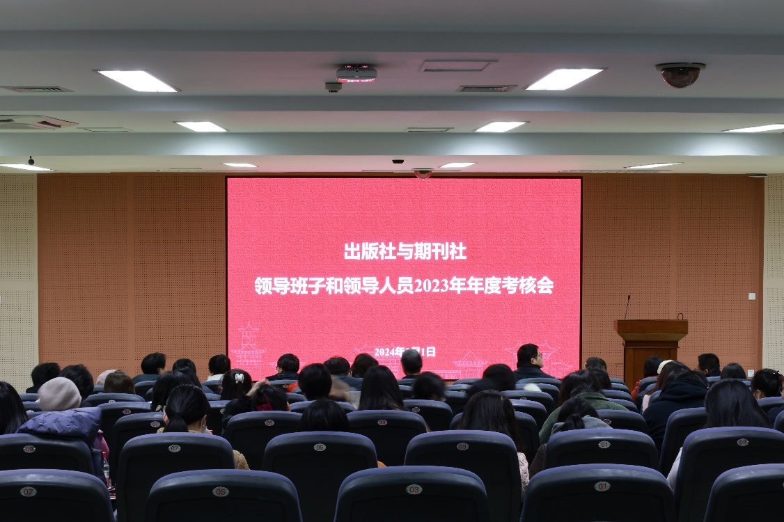 3月1日下午,出版社与期刊社领导班子和领导人员2023年年度考核会暨出版社2024年工作布置会在研究生院231报告厅召开。出版社与期刊社领导班子成员、全体员工,学校党委组织部相关工作人员参加会议。