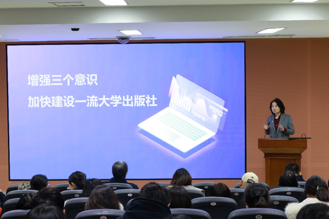 财务总监马晓芳从图书的直接成本、图书的间接成本、期间费用三方面,为全体员工详细讲解了出版社的运营成本构成,以期进一步提高全员的降本增效意识。